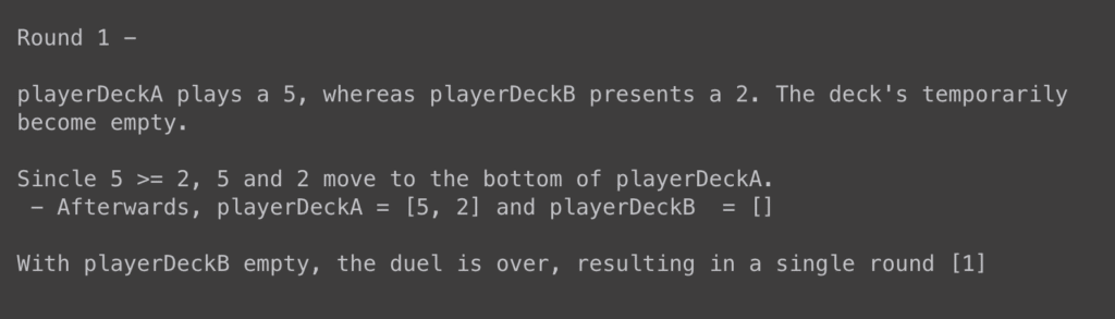 Input: playerDeckA = [5], playerDeckB = [2]